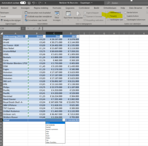Link naar Excelmodel Tabel AEX bedrijven